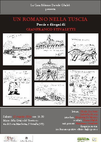 Sabato 12 marzo , alle ore 16.30, presso il Museo della Città e del Territorio, in via di Porta Marchetta, 2 a Vetralla (VT) , verrà presentato il libro di poesie di Gianfranco Stivaletti Un romano nella Tuscia (Davide Ghaleb Editore).