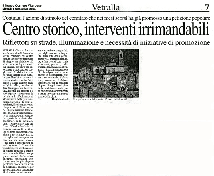 Da "Il Nuovo Corriere Viterbese "- giovedì 1 settembre 2011