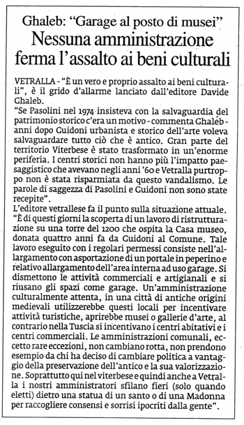 Da "Il Nuovo Corriere Viterbese - venerdì 19 agosto 2011