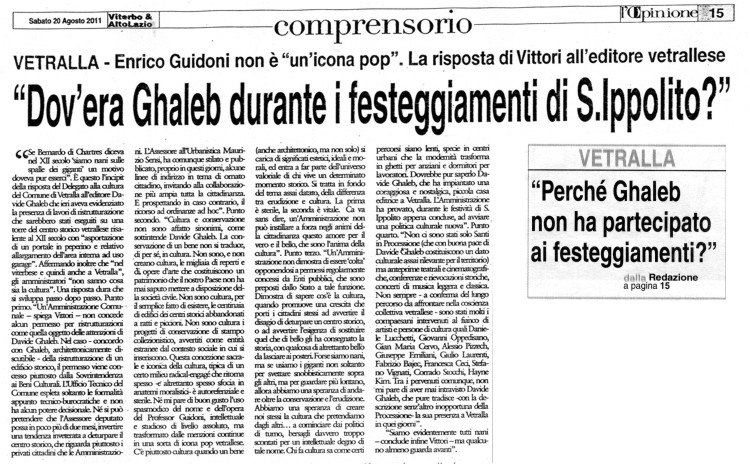 Da "l'Opinione" - sabato 20 agosto 2011