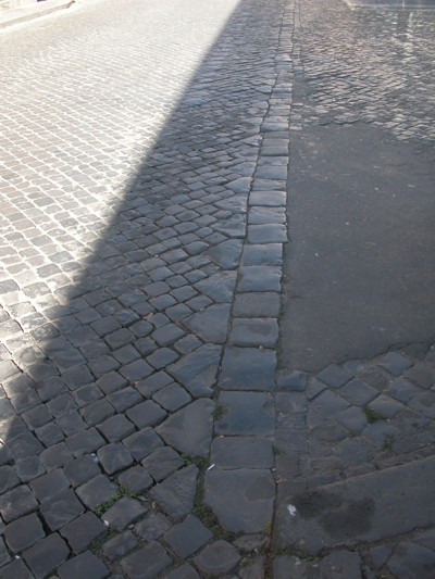 Con nuove buche dissesti giornalieri, dove per mancata manutenzione è logora tela, cos'invece di secolari carezze di zoccoli cavallini stivali e passi col bastone d'anziani (...) |