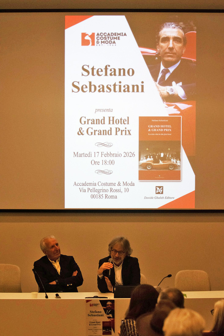 Immagini realizzate durante la presentazione del volume "Grand Hotel & Grand Prix" (di Stefano Sebastiani) Accademia Costume & Moda, Via Pellegrino Rossi 10, Roma, 17 febbraio 2026 (foto Elia Ghaleb)