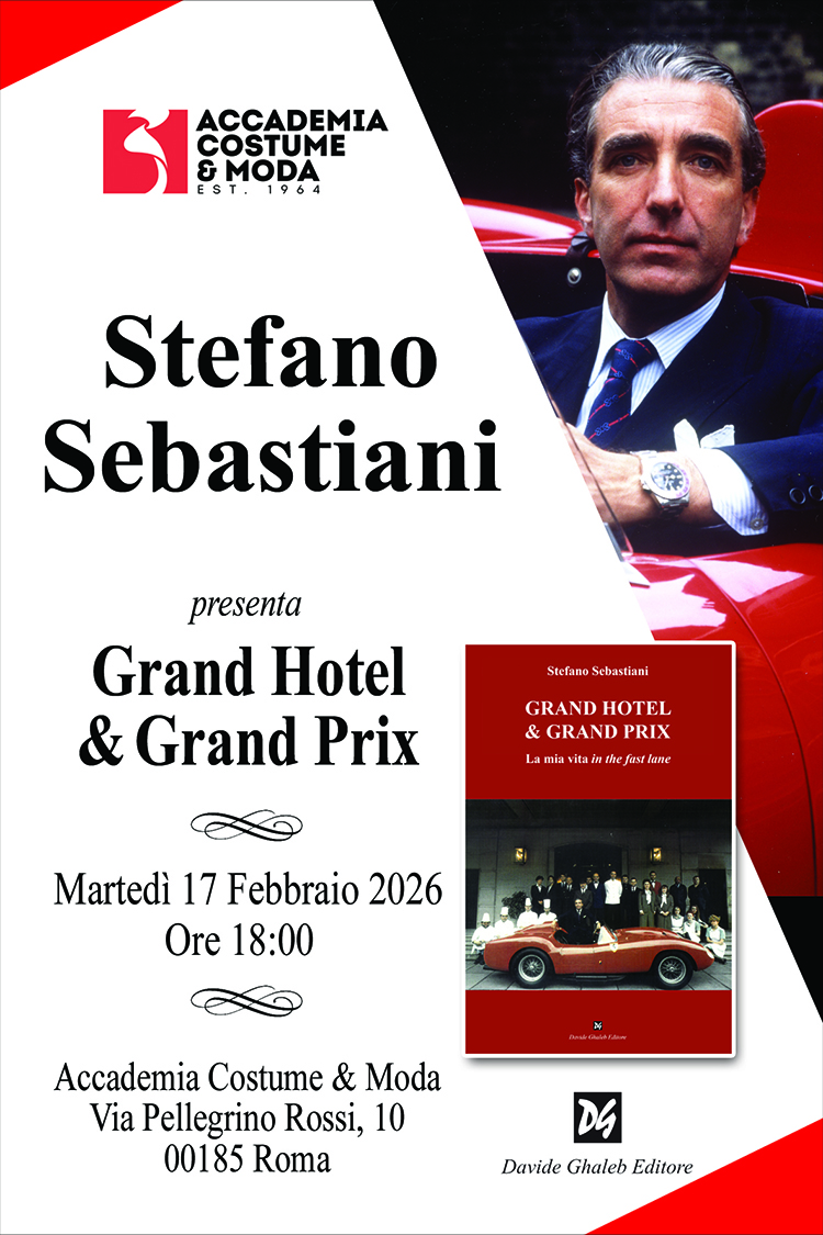 Presentazione del libro Grand Hotel & Grand Prix di Stefano Sebastiani Martedì 17 gennaio 2026, alle ore 18.00, presso l’Accademia Costume e Moda di Roma (via Pellegrino Rossi, 10), si terrà la presentazione del nuovo libro di Stefano Sebastiani, Grand Hotel & Grand Prix, pubblicato dalla Casa Editrice Davide Ghaleb all’interno della collana dedicata alla memoria “Vite in parole”. La vita di Stefano Sebastiani si snoda come un vero e proprio romanzo, ricco di esperienze straordinarie maturate in alcuni dei contesti più esclusivi e affascinanti. Un percorso umano e professionale segnato da un ottimismo incrollabile, che lo ha guidato nell’affrontare e superare sfide impegnative, trasformando ogni ostacolo in un’opportunità di crescita personale. Il racconto, avvincente e a tratti drammatico, restituisce il ritratto di una personalità determinata e vincente. Tra le pagine emergono il fascino delle auto di lusso e un’interessante panoramica sul complesso e articolato mondo dell’hotellerie, offrendo al lettore uno sguardo privilegiato su realtà spesso poco conosciute. Il percorso di Sebastiani, costruito su solide basi familiari, relazioni umane autentiche e una profonda fiducia in sé stesso, si propone come modello di ispirazione soprattutto per i giovani alla ricerca di una direzione e di valori su cui fondare il proprio futuro. Durante l’incontro moderato da Lorenzo De Witt Scalfaro, l’autore sarà lieto di raccontare alcuni dei momenti più significativi della sua vita, così come descritti nel libro. A completare la presentazione, verrà proiettata una selezione di immagini tratte dal volume, a testimonianza visiva delle esperienze narrate. L’ingresso è libero fino a esaurimento posti. Verrà inoltre offerto un aperitivo di saluto.